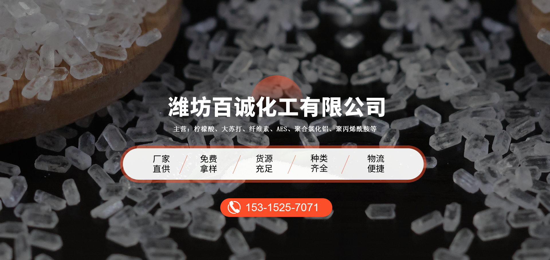 成立于山東的濰坊百誠化工有限公司多年來與國內(nèi)外多家企業(yè)工廠 形成長(zhǎng)期合作,形成了競(jìng)爭(zhēng)力的化工原材料供應(yīng)、銷售和服務(wù) 渠道,主營(yíng):大蘇打、葡萄糖、檸檬酸、纖維素、消泡劑、AES等。